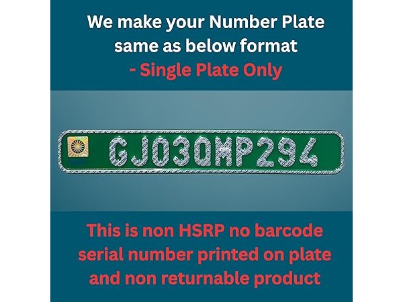 - Format: State code, city code & registration number embossed in correct RTO layout