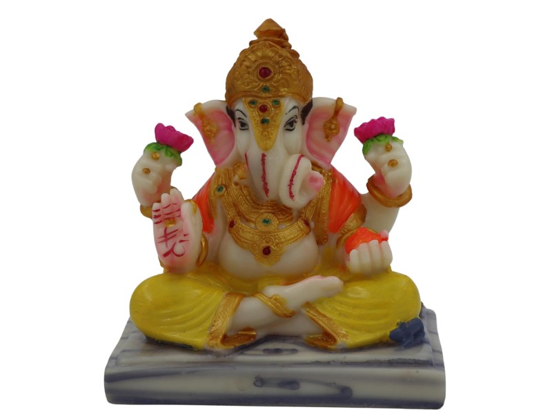 Lord Ganesha Idol for Car Dashboard | Ganesh Statue for Office Decor | Ganesh Putla for homestand | Yellow and Gold Colour | Size 6.5 inches Height