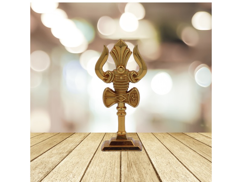 Lord Shiva Trident Stand for Car Dashboard | Stand for Office Decor | Stand for homestand | Gold Colour | Size 4 inches Height