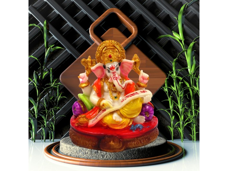 Lord Ganesha Idol for Car Dashboard | Ganesh Statue for Office Decor | Ganesh Putla for homestand | Multicolour Colour | Size 5 inches Height